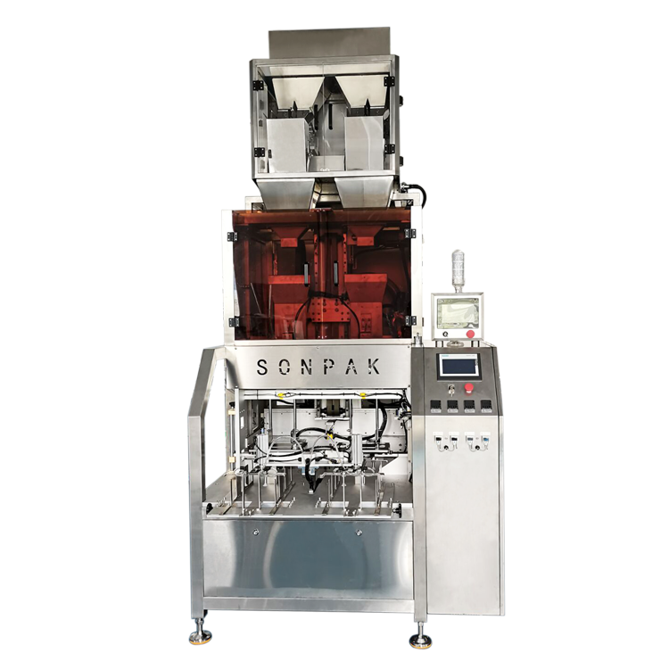 適用于貓砂等形狀均勻、流動性較好的顆粒物料的真空整形包裝。全自動化,有效節約生產成本,能自動取袋、送袋、開袋、上袋、充填、整形抽真空、封口、成品輸出。